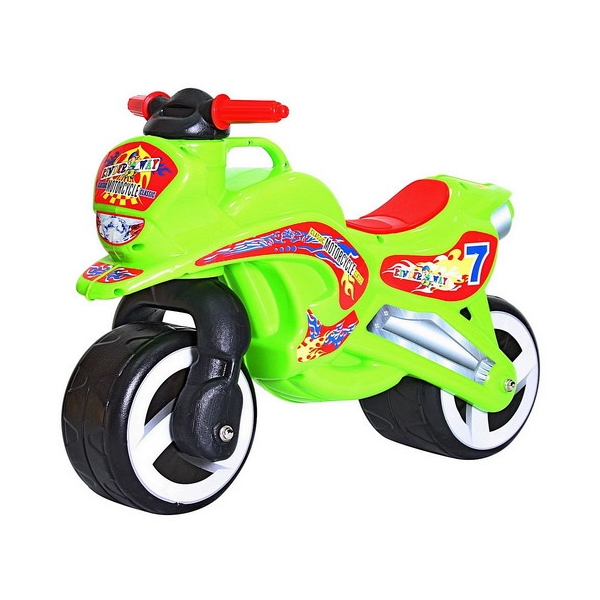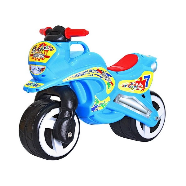 Каталка мотоцикл для малышей. Яркий дизайн и аэродинамические формы этой каталки-мотоцикла оценят стильные родителям и их дети. Благодаря своей удобной конструкции кататься на этой каталке смогут даже самые маленькие дети от 18 месяцев. Польза беговелов для детей давно доказана. Каждый малыш от 18 месяцев должен начинать знакомиться с транспортом со своего первого беговела. Езда на беговеле позволит малышам получить первые навыки управления транспортом. Широкие колеса обеспечивают устойчивость беговела. Безопасность- 10 баллов. Руль имеет эргономичную форму и позволяет безопасно управлять каталкой. Уникальность беговела в том, что угол поворота руля сделан таким образом, чтобы быть безопасным в использовании. Грамотно продуманный угол поворота (неполный), что дает малышу безопасное маневрирование и безопасно поворачивать, не позволяя беговелу перевернуться. Проходимые колеса предназначены для любых дорог. Эргономичное сиденье шириной 12 см- малышу будет очень удобно. Уникальная разработка инженеров- ручка для переноски. Это очень удобно. Изготовлено из высококачественного и экологического пластика по самым современным европейским технологиям.