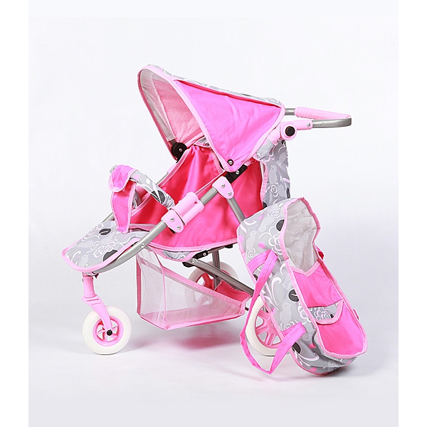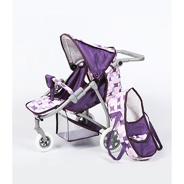 В комплекте коляски для кукол есть сумка переноска. У коляски для кукол регулируется по высоте спинка и подножка.