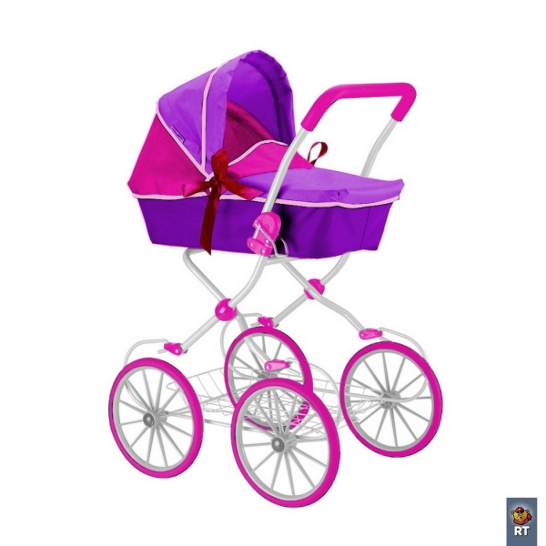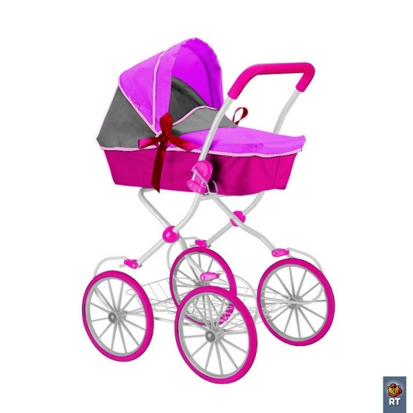 Элегантная классическая коляска для кукол на больших колесах цвета фуксия с белыми спицами. Атласные бантики и белоснежная рама придают коляске изысканность и утонченность. Эта закрытая коляска выглядит как маленькая копия настоящей современной коляски для детей. У нее есть все как у настоящей коляски: багажник внизу, складной капюшон, ручка из мягкого материала. Люльку с капюшоном можно переставлять лицом к маме и лицом к дороге. Маленькая заботливая мама обязательно оценит это. Также ей понравится уникальность этой модели- благодаря специальным креплениям на раме, коляску можно качать. Юная мама быстро укачает куклу перед сном. Уникальные колеса- они прорезиненные сверху, что дает плавность и мягкость хода. И конечно же, эти колеса не гремят по дороге. Благодаря амортизаторам обеспечивается плавность хода, устойчивость и проходимость.