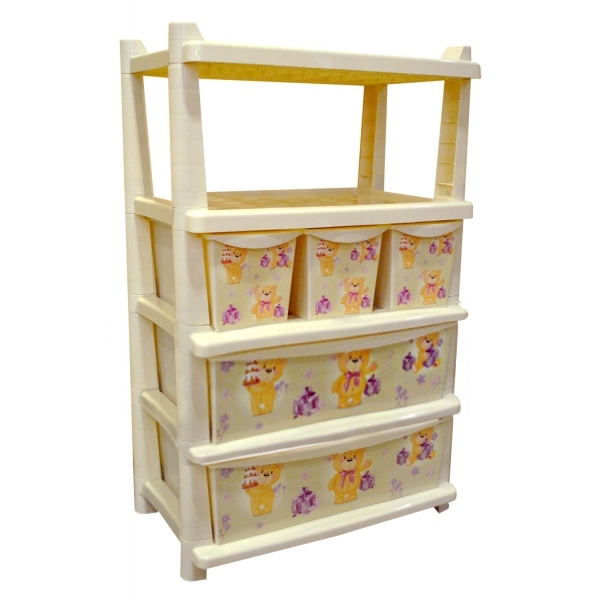 Купила две недели назад комод с мишками.Честно сказать боялась - пластик все-таки. На самом деле оказался не только красивый, но и прочный. К тому же очень практичный. Ящики глубокие,вместительные, разные по размерам . Дочка на третий день нарисовала на нем маркером. Отмылось все "художество" с легкостью! Очень довольна покупкой!