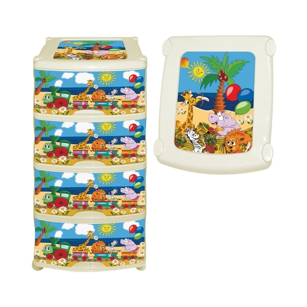 Пластиковый комод с 4 ящиками Паровозики дополнит интерьер любой детской комнаты.