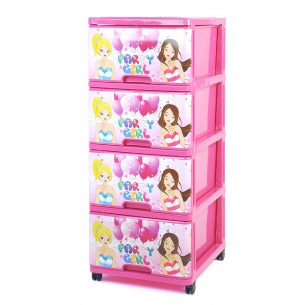 Комод пластиковый с 4 ящиками Декорс изображением подружек отлично дополнит детскую вашего ребенка.