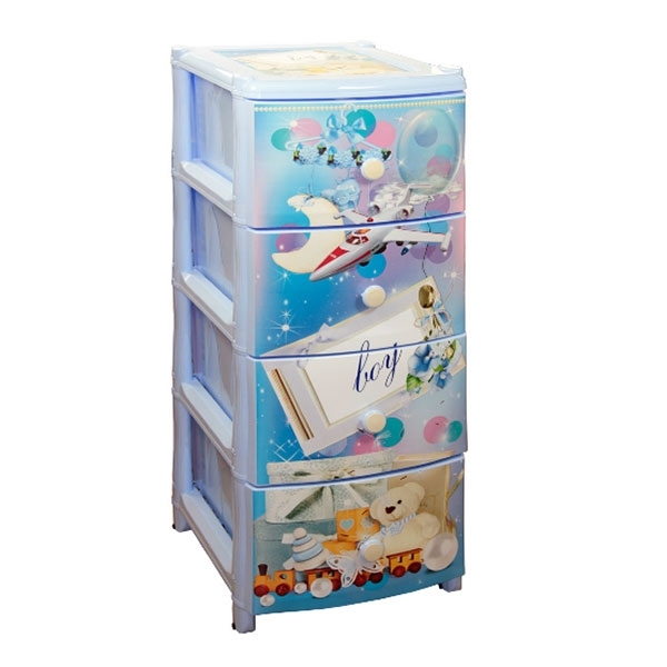 Пластиковый комод с 4 ящиками Boy украсит любую комнату, поможет содержать вещи в порядке.