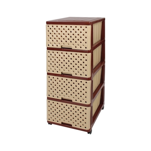 Пластиковый комод с 4 ящиками Сетка 04044 упакован в персональный гофрокороб: удобство при транспортировке.