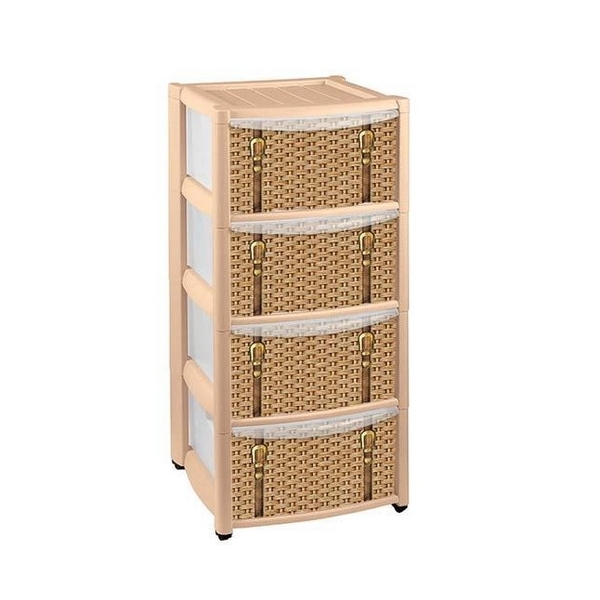 Пластиковый комод с 4 ящиками Ротанг оснащен колесиками для удобства передвижения!