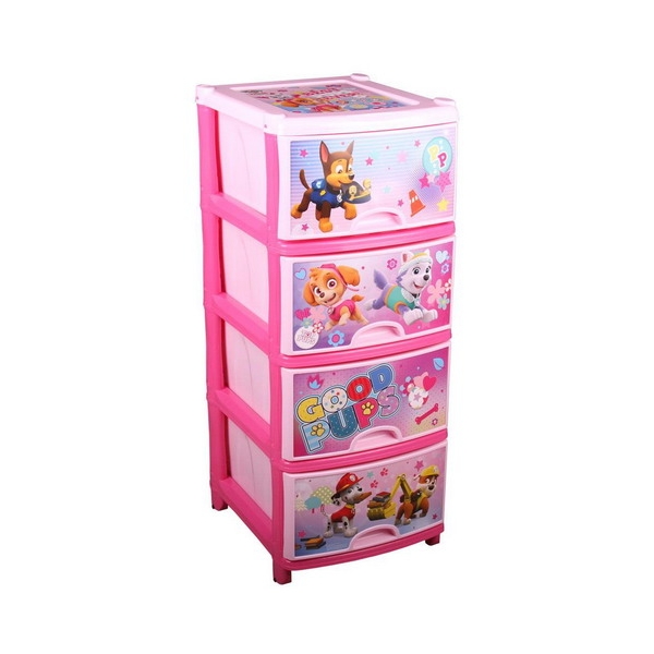 Детский комод для игрушек с 4 ящиками Щенячий патруль №1 арт. М6099. Детские пластиковые комоды для игрушек с изображением героев из мультиков пользуются самой большой популярностью среди покупателей.