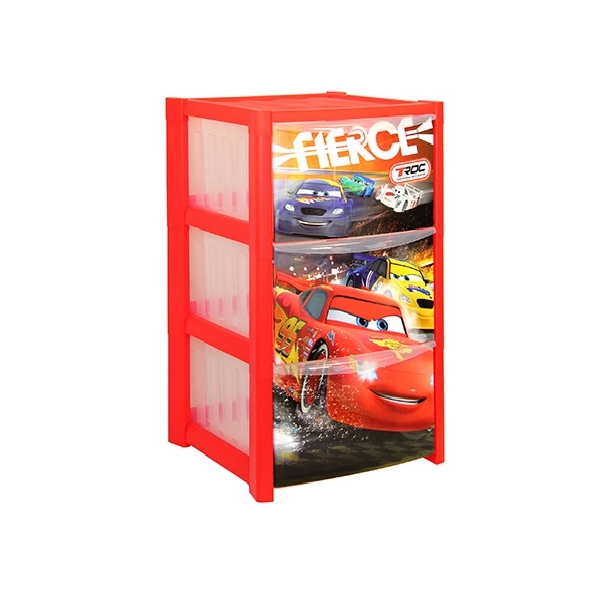Детский комод для игрушек Тачки Молния McQueen 3 секции арт.М 2791-Д. Детские пластиковые комоды для игрушек с изображением героев из мультиков пользуются самой большой популярностью среди покупателей.
