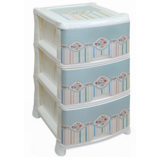 Пластиковый комод с 3 ящиками Violet Винтаж имеет яркий, красочный дизайн и доступную цену, благодаря чему станет практичным и стильным элементом вашего декора.