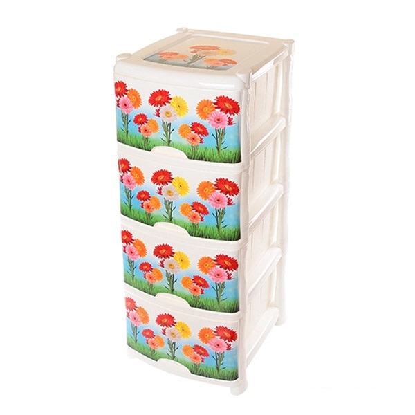 Пластиковый комод с 4 ящиками Цветы - украшен сочными герберами, он придаст свежести вашей комнате.