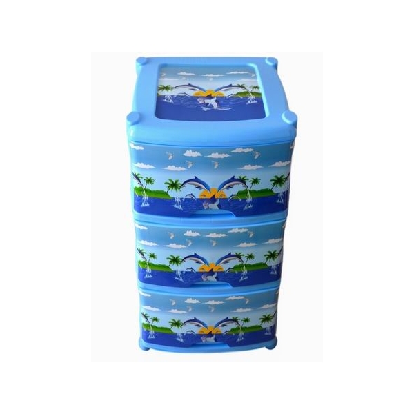 Устойчивая яркая стойка и три ящика комода изготовлены из безопасного для здоровья ребенка пластика. Яркие рисунки дельфинов поднимут настроение, а достаточно вместительные ящики позволят хранить различные детские принадлежности.