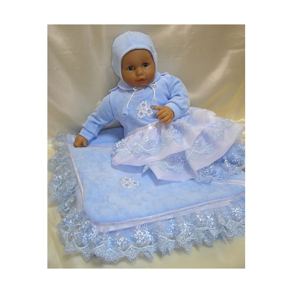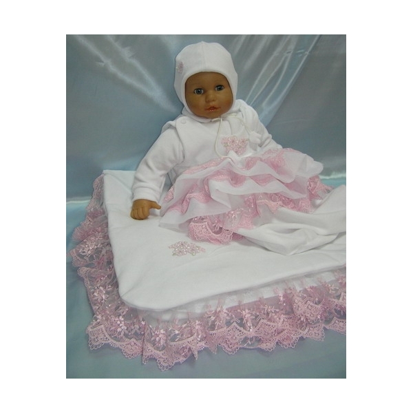 Этот очень нарядный комплект включает все необходимые принадлежности на выписку новорожденного.