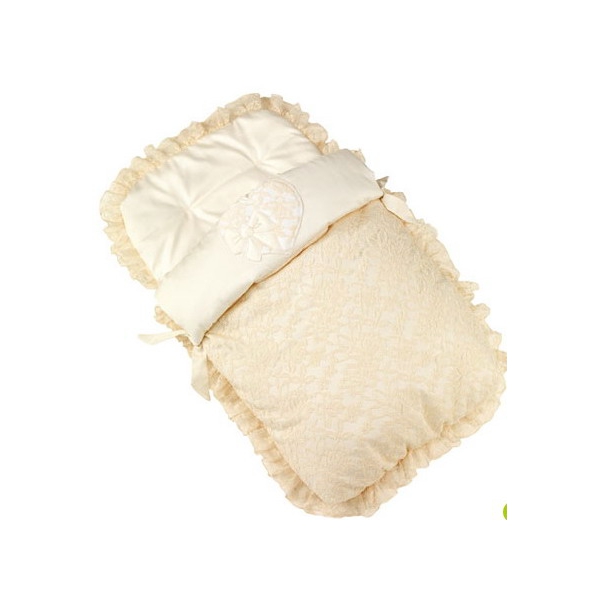 Это нарядный и стильный конверт на выписку, который можно использовать как для выписки новорожденных малышей, так и в последующей их жизни.