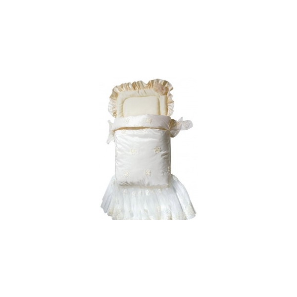 Это нарядный и стильный конверт на выписку, который можно использовать как для выписки новорожденных малышей, так и в последующей их жизни.