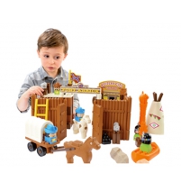 Конструктор состоит из 70 предметов, которые выполнены из прочной пластмассы. Также в наборе вы найдёте две машинки.