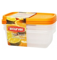 Набор из трех контейнеров привлекательного дизайна предназначен специально для хранения пищевых продуктов. Контейнеры квадратной формы и одинакового размера. Крышки легко открываются и плотно закрываются. Они устойчивы к воздействию масел и жиров, легко моются (можно мыть в посудомоечной машине). Прозрачные стенки позволяют видеть содержимое. Подходят для использования в микроволновых печах. Контейнеры имеют возможность хранения продуктов глубокой заморозки. Контейнеры обладают высокой прочностью.