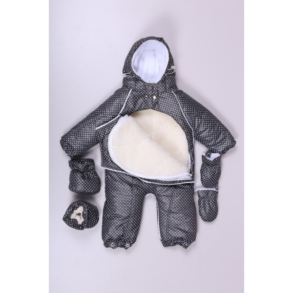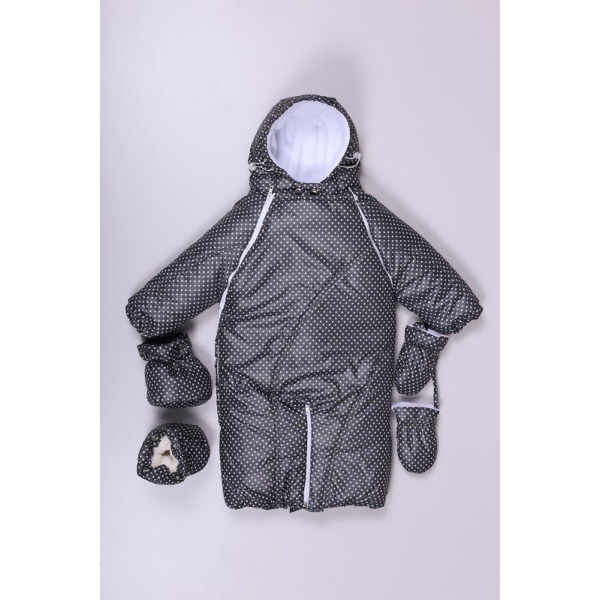 Это многофункциональный тёплый детский комбинезон-конверт на молнии со съёмной меховой подкладкой, что позволяет использовать его весной, осенью и зимой.