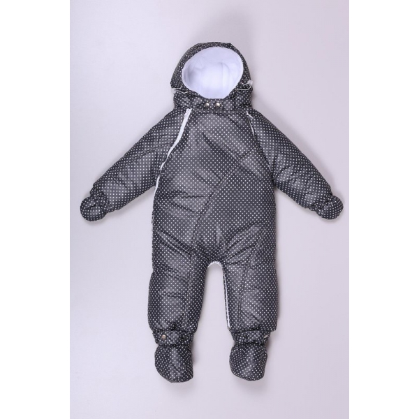 В комплекте — пинетки и варежки на овчине. Две длинные молнии от области шеи практически до низа комбинезона облегчают процесс одевания малыша. Пинетки крепятся к комбинезону кнопками, варежки — на верёвочке. На капюшоне регулируемые завязки.Температурный режим с овчинной подстёжкой — до — 25°C, без овчинной подстёжки — от +10°C до -10°C.