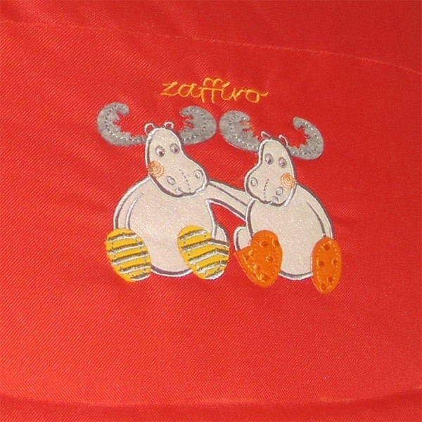 Украшен конверт изящной вышивкой с изображением двух очаровательных лосей.