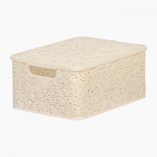 Крышка пластиковая Кружева М. Корзинки пластиковые - это отличная альтернатива корзинам, сплетенным из натурального ротанга, т.к., в отличие от них, не зацепляет и не царапает хранящиеся в ней вещи.