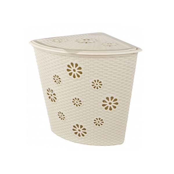 Неоспоримое удобство угловой корзины для белья Плетенка в том, что она легко вписывается в любой свободный угол и не загромождает пространство. Корзина имеет удобно открывающуюся крышку, есть язычок для удерживания крышки. У корзины для белья имеются отверстия для циркуляции воздуха. Хорошая циркуляция воздуха внутри корзины для грязного белья является немаловажным условием. В период хранения до очередной стирки оно не приобретает неприятные запахи и не отсыревает даже в условиях ванной комнаты.