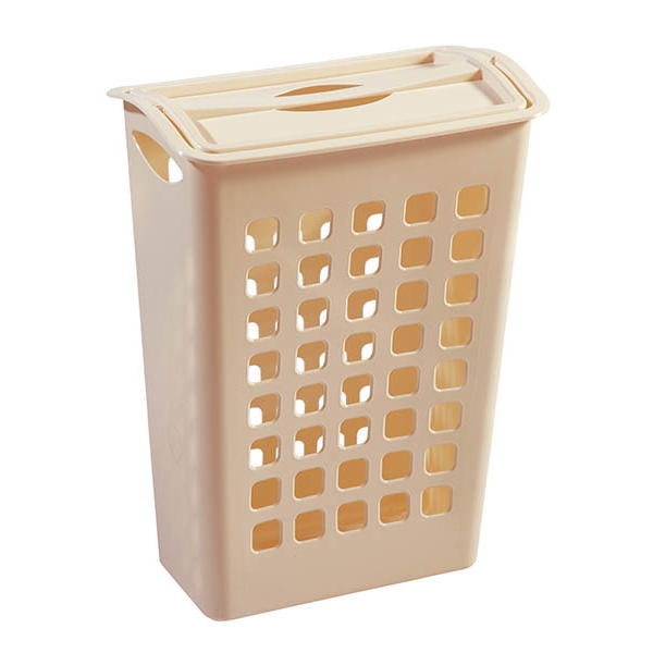 Благодаря оригинальному дизайну, узкую корзину для белья удобно использовать в ограниченном пространстве ванной комнаты, а съемная поворачивающаяся крышка позволяет легко класть и доставать бельё.