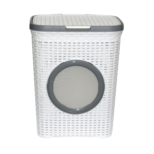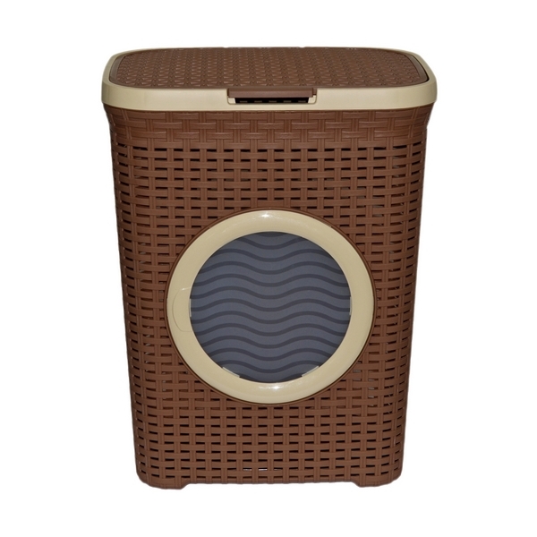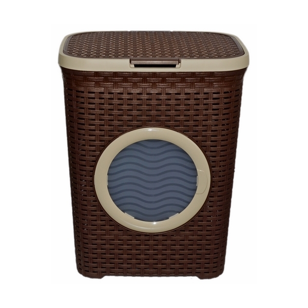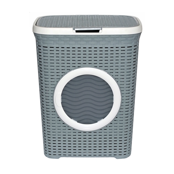 Корзина для белья в ванную 40л с иллюминатором арт.1841. Корзины для белья в ванную позволяют хранить вещи перед стиркой возле стиральной машины.