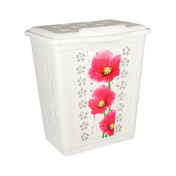Удобная пластиковая корзина с крышкой, украшенная оригинальным рисунком и идеально подойдет для вашей ванной комнаты.