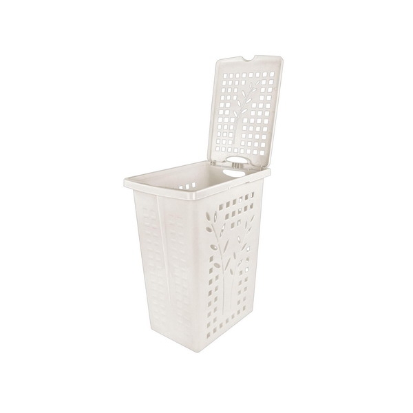 Прямоугольная корзина изготовлена из прочного пластика. Она отлично подойдет для хранения белья перед стиркой. Большое количество отверстий на стенках корзины создает идеальные условия для проветривания. Корзина плотно закрывается крышкой.