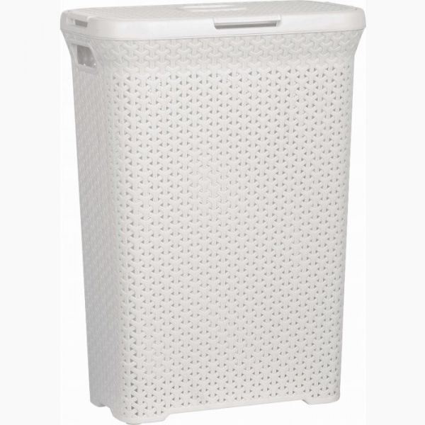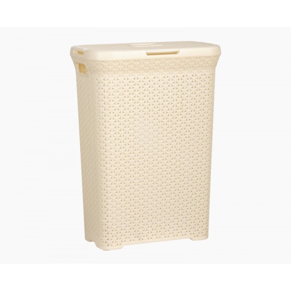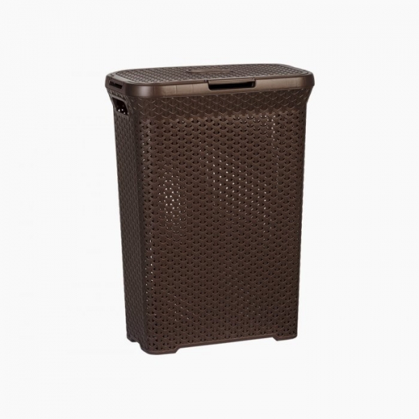 Корзина для белья плетеная 55 л позволяет хранить вещи перед стиркой возле стиральной машины.