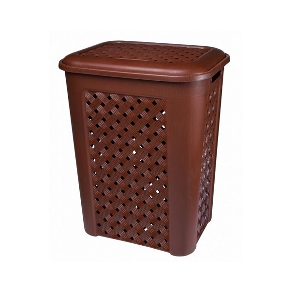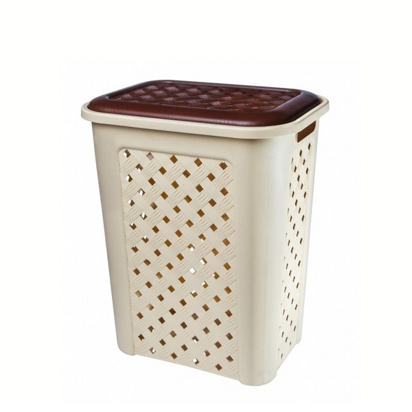 Это удобная корзина, которую можно поставить в любой угол и она будет смотреться очень эстетично. Имеется практичная крышка, благодаря которой содержимое корзины не пылится. Произведенная из пластика корзина, в отличии от корзин из натуральной соломки, не повреждает находящихся в них предметов.