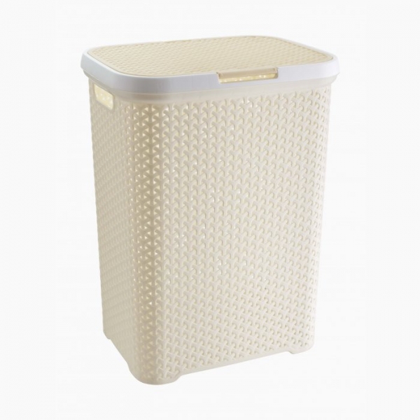 Корзина для белья плетеная 60 л позволяет хранить вещи перед стиркой возле стиральной машины.