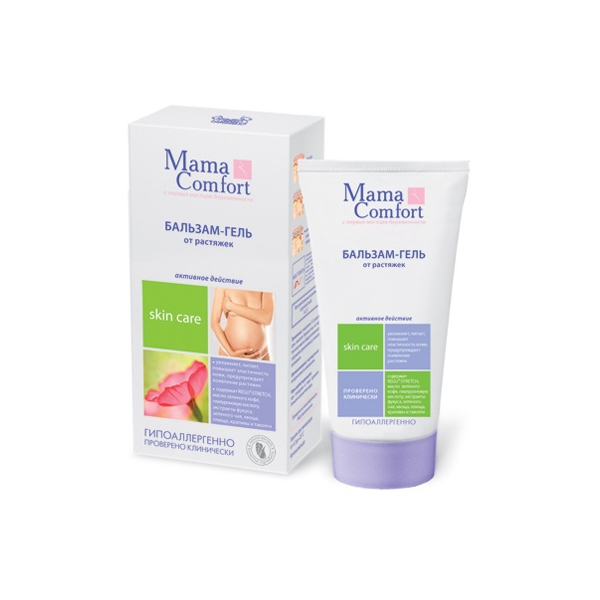 Ежедневное применение бальзам-геля в течение беременности (начиная с 3-4 месяца) и в последоровой период предупреждает появление растяжек, нормализует состояние кожного покрова, возвращая ему эластичность и упругость, способствует уменьшению уже существующих растяжек. Содержит REGU-STRETCH, масло зеленого кофе, гиалуроновую кислоту, экстракты фукуса, зеленого чая, хвоща, плюща, крапивы и таволги.