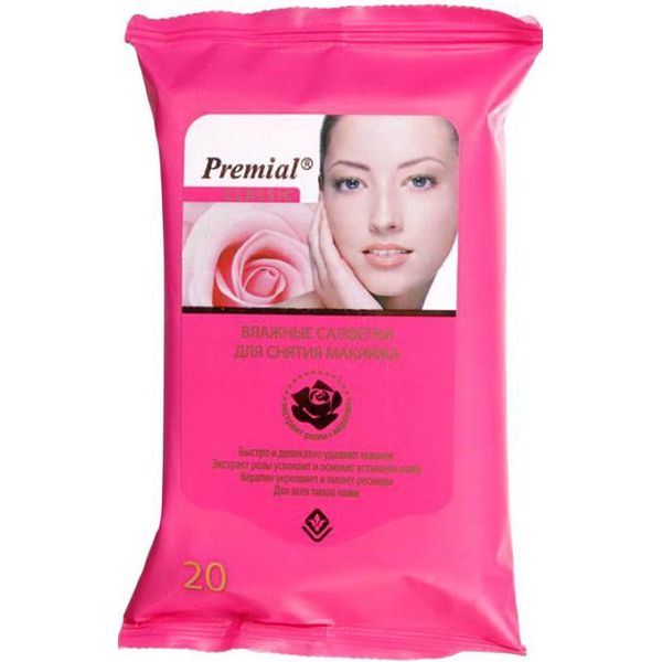 Эффективно удаляют макияж, в том числе водостойкий. Влажные салфетки "Premial" для снятия макияжа подходят для любых типов кожи.