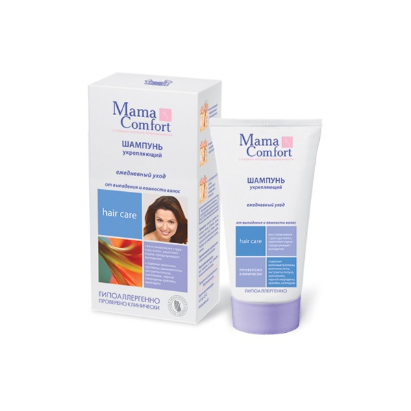 Шампунь "Mama Comfort" против выпадения и ломкости волос имеет повышенное содержание биоактивных веществ. Шампунь оказывает укрепляющее и противовоспалительное действие на волосяные луковицы. Молочные протеины, аминокислоты, экстракты лопуха, шиповника, черной смородины, крапивы и календулы тонизируют кожу головы, стабилизируют деятельность сальных желез, препятствуют выпадению и ломкости волос, восстанавливают их поврежденную структуру.