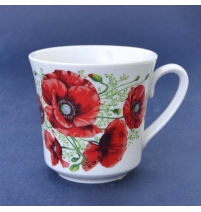 Кружка Рассвет Маки. 250 мл. Одним из самых популярных элементов посуды являются кружки фарфоровые. В каждом доме имеется несколько пар, а то и десятков подобных предметов. В них наливают соки, морсы, компоты, чай, кофе и другие напитки. Устойчивая к температурным воздействиям, посуда практична в эксплуатации. Она не требует специального ухода, без труда отмывается в теплой воде. Фарфоровые кружки можно использовать для сервировки обеденного стола и стола для праздничного чаепития.