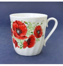 Кружка Витая Маки. 350 мл. Одним из самых популярных элементов посуды являются кружки фарфоровые. В каждом доме имеется несколько пар, а то и десятков подобных предметов. В них наливают соки, морсы, компоты, чай, кофе и другие напитки. Устойчивая к температурным воздействиям, посуда практична в эксплуатации. Она не требует специального ухода, без труда отмывается в теплой воде. Фарфоровые кружки можно использовать для сервировки обеденного стола и стола для праздничного чаепития.
