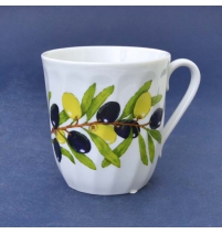 Кружка Витая Оливки. 350 мл. Одним из самых популярных элементов посуды являются кружки фарфоровые. В каждом доме имеется несколько пар, а то и десятков подобных предметов. В них наливают соки, морсы, компоты, чай, кофе и другие напитки. Устойчивая к температурным воздействиям, посуда практична в эксплуатации. Она не требует специального ухода, без труда отмывается в теплой воде. Фарфоровые кружки можно использовать для сервировки обеденного стола и стола для праздничного чаепития.