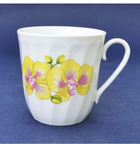 Кружка Витая Орхидеи. 350 мл. Одним из самых популярных элементов посуды являются кружки фарфоровые. В каждом доме имеется несколько пар, а то и десятков подобных предметов. В них наливают соки, морсы, компоты, чай, кофе и другие напитки. Устойчивая к температурным воздействиям, посуда практична в эксплуатации. Она не требует специального ухода, без труда отмывается в теплой воде. Фарфоровые кружки можно использовать для сервировки обеденного стола и стола для праздничного чаепития.