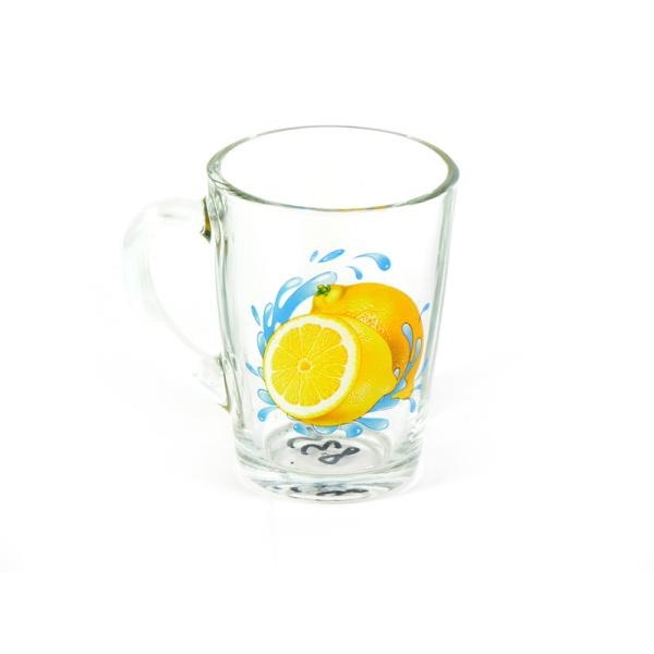 Кружка изготовлена из бесцветного стекла и украшена ярким рисунком. Идеально подходит для сервировки стола.