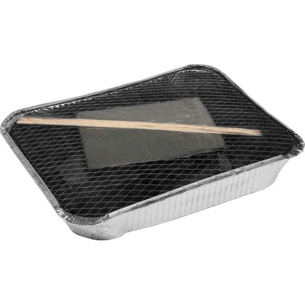 Гриль BoyScout одноразовый используется для приготовления барбекю в походных условиях. Размер: 32х26х5см. Вес: 0,61кг. Материал: поддон из металлической фольги, древесный уголь, решетка для приготовления мяса, деревянные шпажки 30см - 4шт., пакет для мусора.