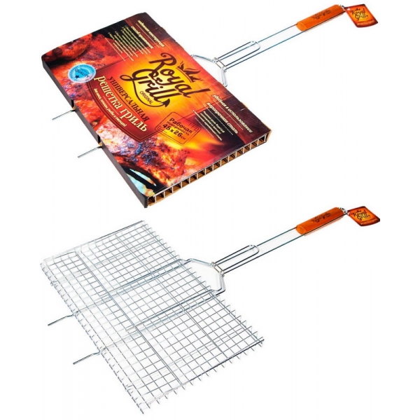 Решетка-гриль большая 45х26см RoyalGrill предназначена для приготовления мяса, овощей, колбасок, сосисок и прочих продуктов на углях, в открытой шашлычнице, в камине, на открытом огне.
