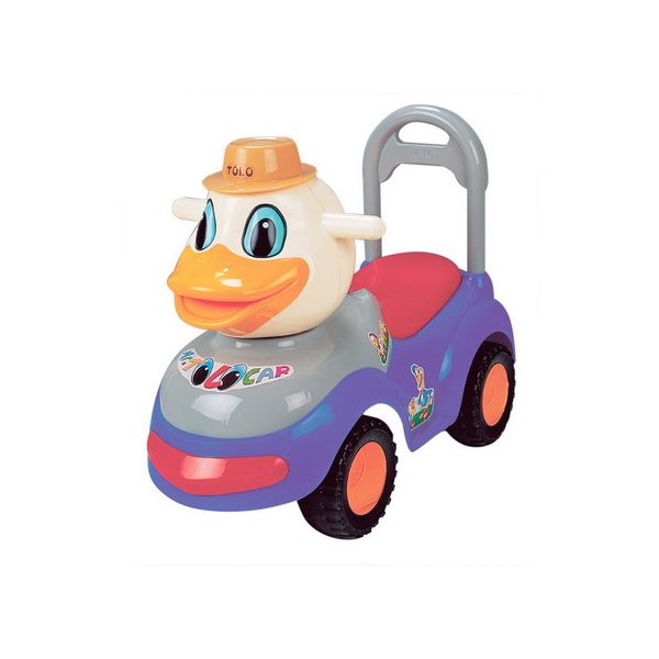 Детская машинка каталка Glory для детей от года. Управляется рулем, на котором расположена пищалка. Сзади расположена спинка. Также у модели электрические фары и поворотники.