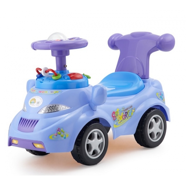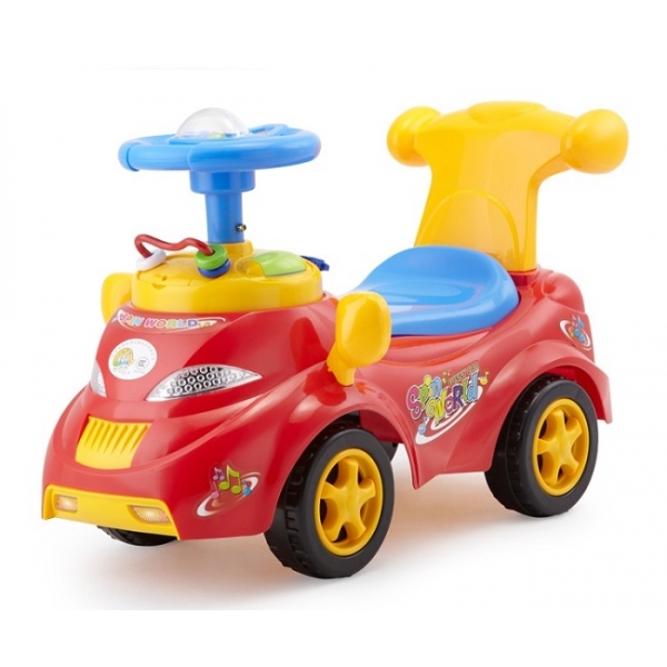 Машинка каталка Tolocar - полезная и увлекательная игрушка для малышей. Малыш может кататься на этой каталке, отталкиваясь ногами, а может посадить на неё любимую игрушку и толкать машинку. А сопровождать эту забаву будут звуковые эффекты, для чего предусмотрен музыкальный руль с различными кнопочками. Также есть и другие развивающие эелементы - шестерёнки, счёты и т.д. Под сиденьем c высокой спинкой есть багажник.