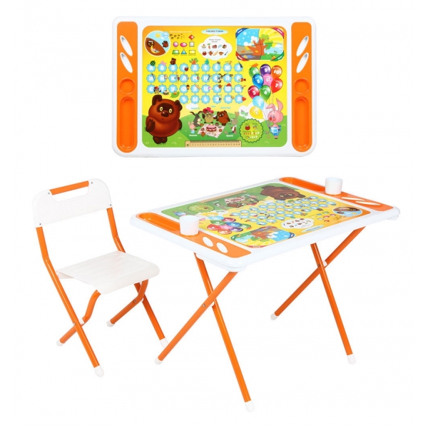 Набор детской мебели Дэми Винни пух с увеличенной площадью столешницы. Наборы детской мебели разработаны в соответствии с рекомендациями детских врачей-ортопедов: правильные наклон спинки и высота стола снижают нагрузку на позвоночник до минимума. На рабочей поверхности есть обучающие материалы, а также живописный фон и герои любимого мультфильма, которые помогут ребёнку в увлекательной форме приобрести новые знания.
