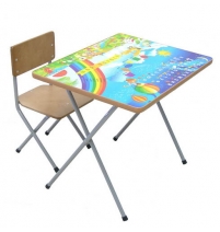 На ламинированную столешницу нанесено яркое детализированное изображение с таблицами и рисунками: технические новинки и веселые роботы порадуют любого современного ребенка.