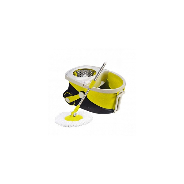 Комплект для уборки представляет собой ведро с функциями отжима и полоскания на колесиках, уникальную универсальную швабру с возможностью вращения на 360 градусов и двух дополнительных насадок для швабры. Все элементы выполнены из нержавеющей стали, оснащен колесиками и ручкой для удобной транспортировки.
