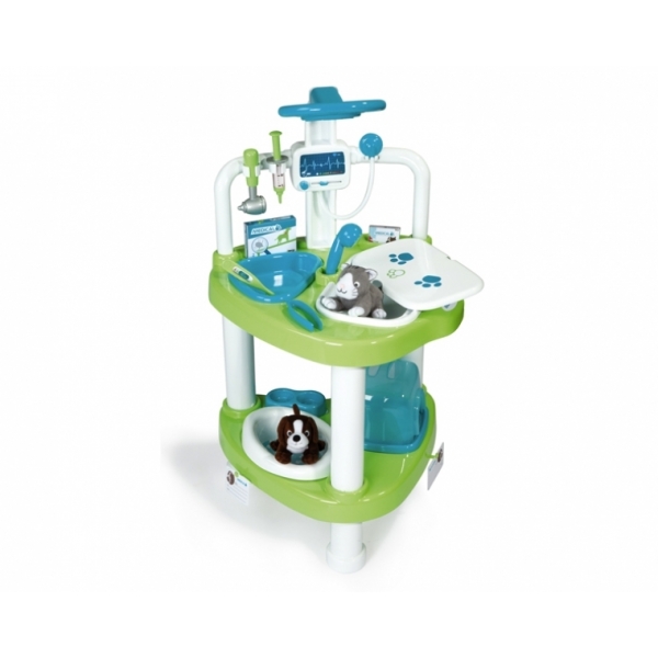 Набор доктора ветеринара Smoby (Смоби) миниклиника понравится как девочкам, так и мальчикам 3-х лет и старше. Игровой набор выполнен из высококачественного, прочного, безвредного для деток гигиенического пластика, который окрашен нетоксичными красками. Набор доктора представлен в виде удобной двухъярусной конструкции, которая снабжена различными полочками, емкостями и крючками для самого необходимого медицинского инструментария.