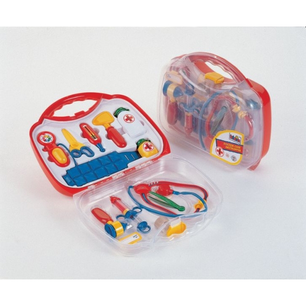 Для знакомства с профессией врача ребенку отлично подойдет набор доктора 4630 от KLEIN. Малыш узнает, для чего нужен каждый инструмент. В набор входят: пинцет, медицинский молоточек, шприц, стетоскоп-наушники, градусник, баночки для лекарств, прибор для измерения артериального давления, ножницы, табличка доктора. Все инструменты упакованы в чемоданчик с прозрачной крышкой, чтобы набор можно было взять с собой в дорогу. Теперь все куклы будут всегда здоровы!