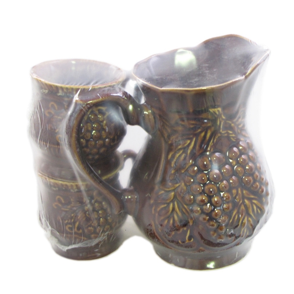 Кувшин+2 чашки из керамики, в основе которой - природная бурая глина.