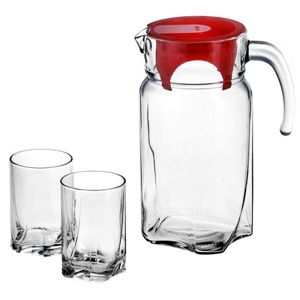 Кувшин и 6 стаканов Луна предназначен для интенсивного использования. Набор, выполненный из упрочненного непористого стекла, подойдет для хранения и подачи на стол воды и прохладительных напитков. Классическая форма и граненая поверхность кувшина позволит ему вписаться в любой кухонный или столовый интерьер. Вместительный кувшин дополнен плотно закрывающейся крышкой из цветного пластика. Набор прост в уходе и эксплуатации, его можно мыть в посудомоечной машине.
